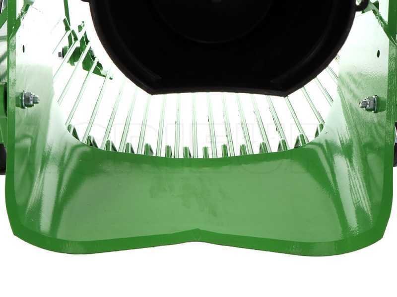 L’intensité du tamisage peut être augmentée en ajustant l’inclinaison de la trémie de tamisage. Tous les éléments vibrants sont entraînés par un mécanisme à manivelle actionné par l’arbre de prise de force du tracteur.