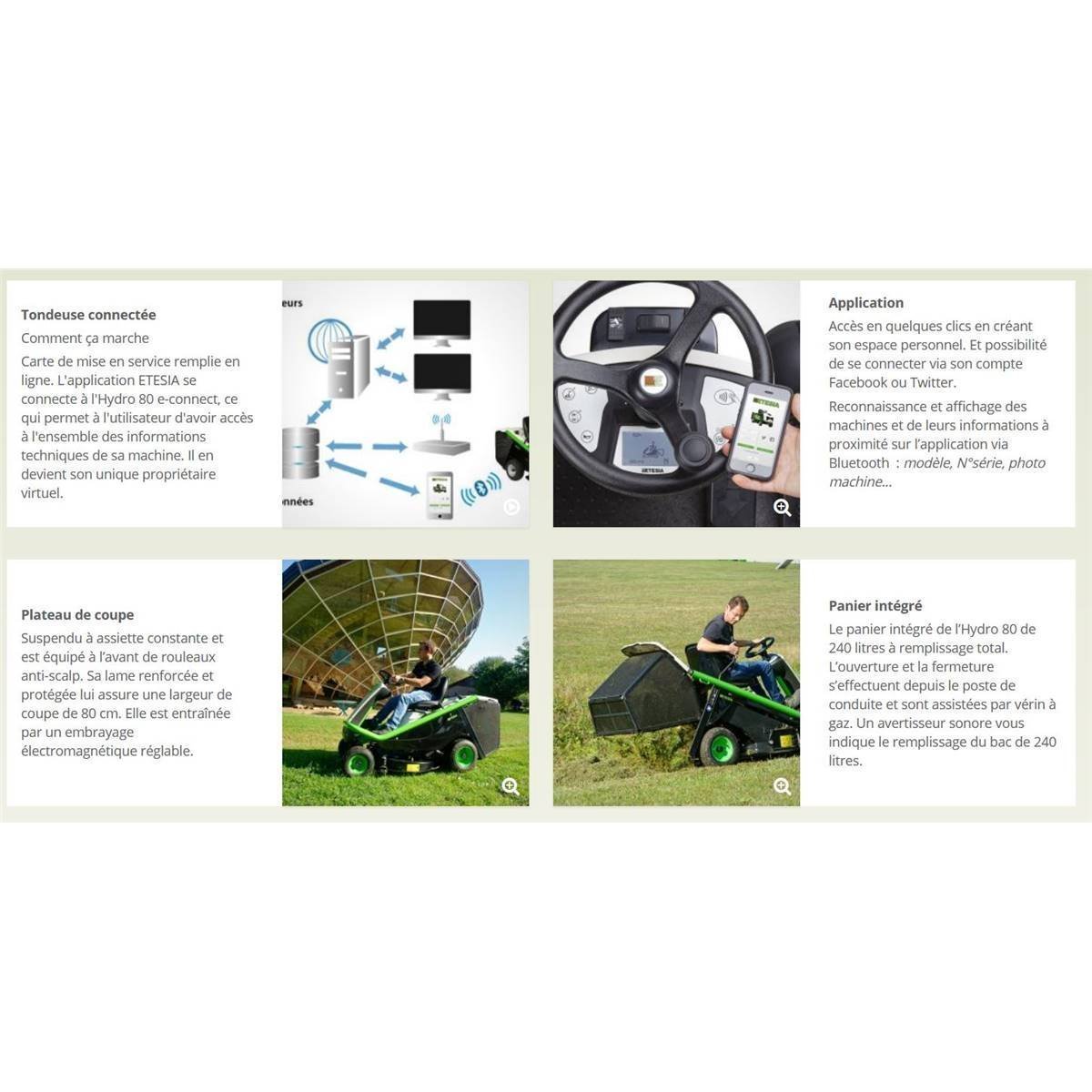 La version e-connect transforme lautoportée Hydro 80 en véritable concentré de technologie : la première tondeuse connectée !