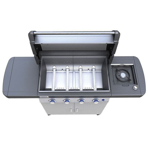 Le barbecue est équipé de quatre brûleurs en inox, chacun réglable individuellement :