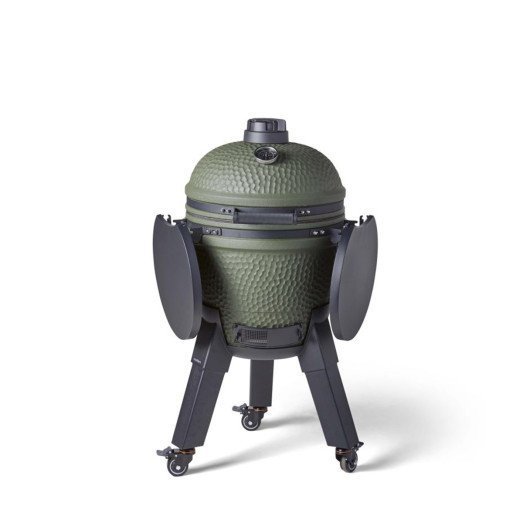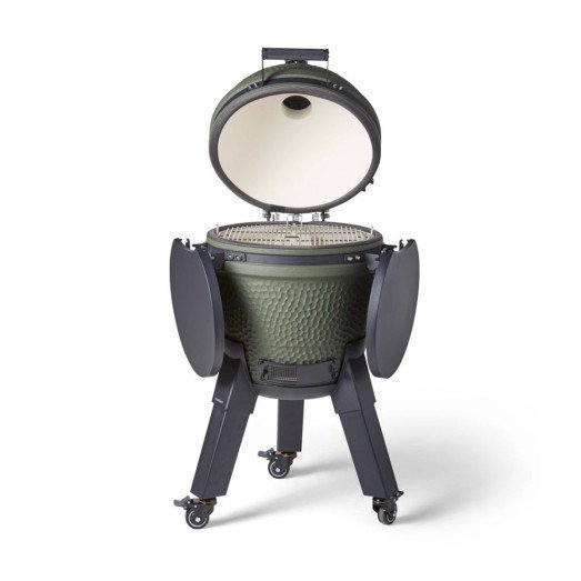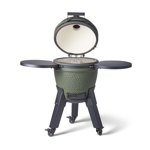 Barbecue kamado Moddern vert pieds alu noir + tablette + roulettes