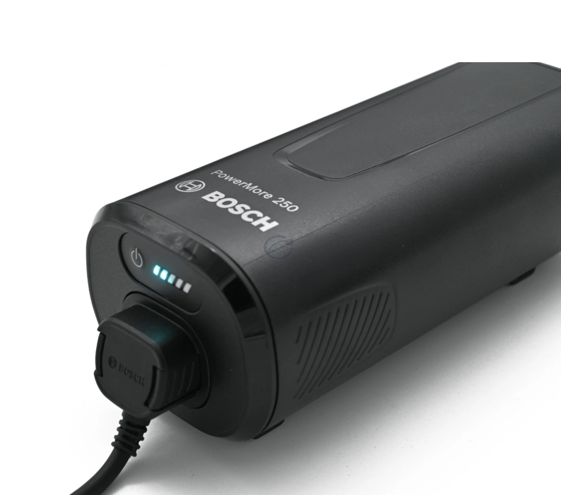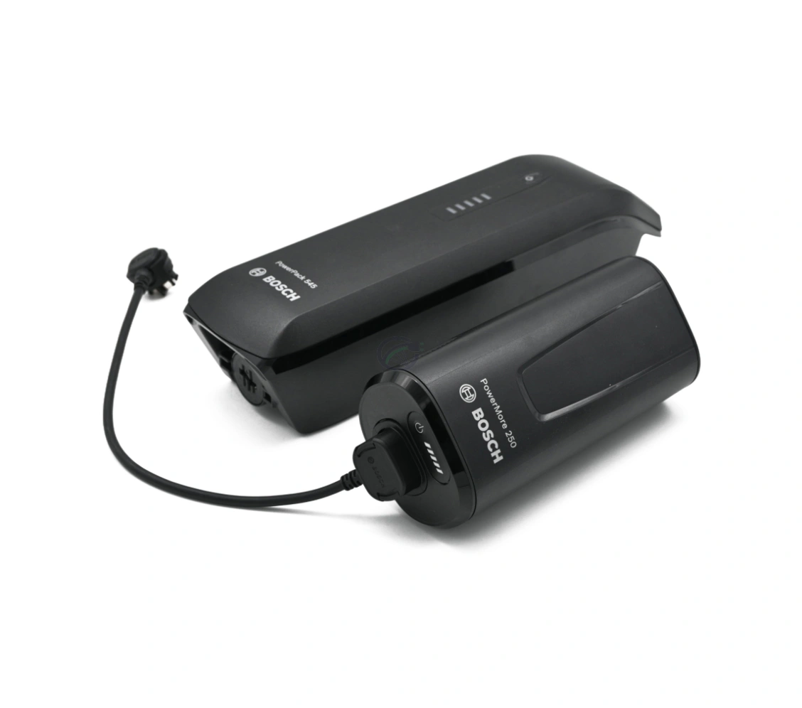Cette offre comprend la batterie de vélo Bosch Powerpack 545 SMART Frame, le Bosch PowerMore 250 Range Extender et le câble correspondant de 300 mm.
