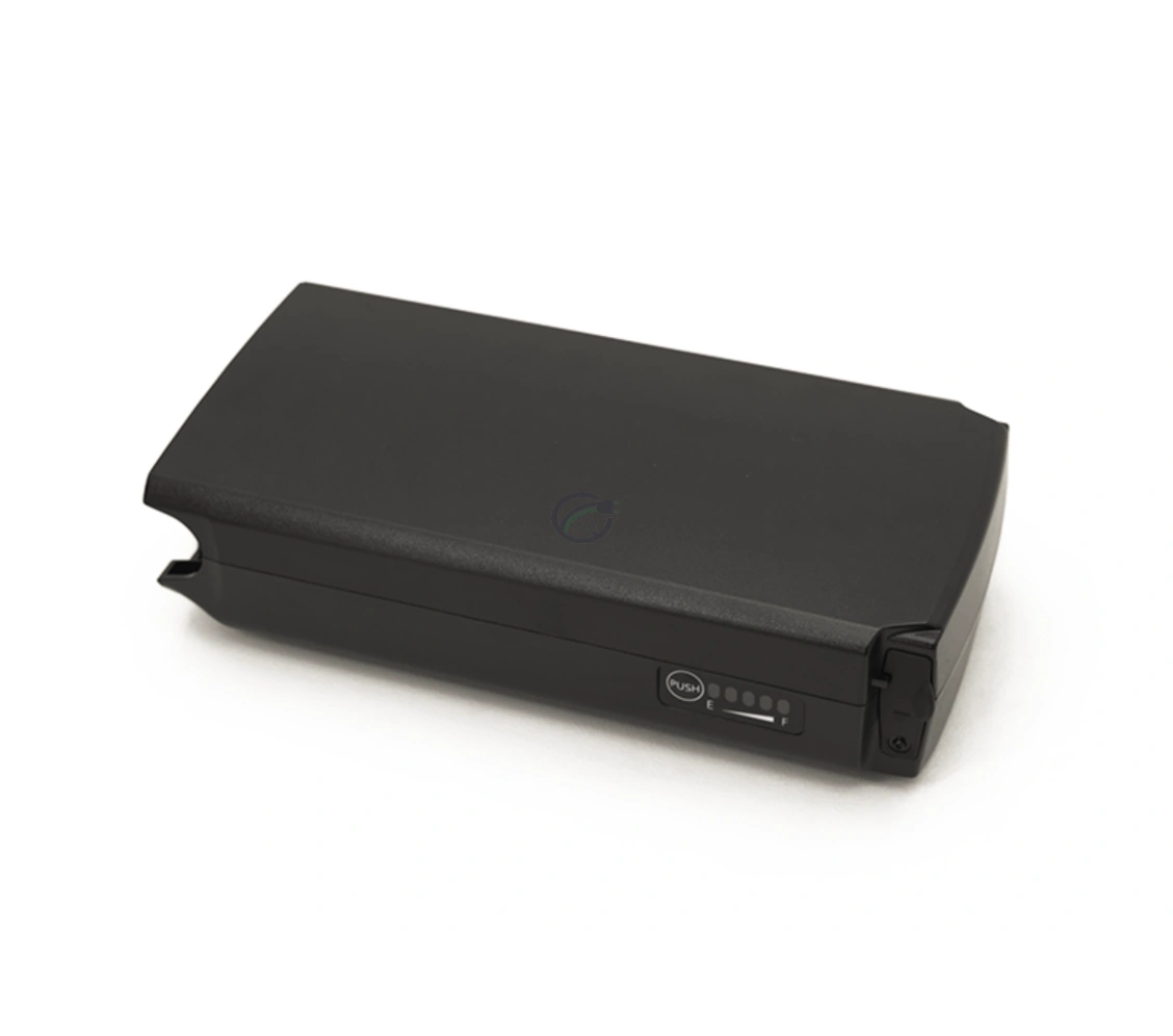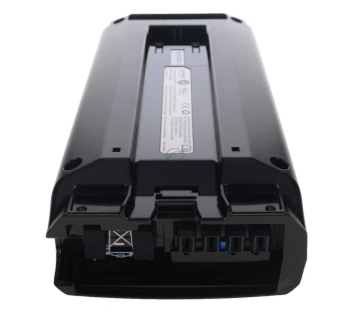 La Batterie de vélo Gazelle Panasonic Bronze 36V 6.6Ah est rectangulaire et entièrement noire. La marque Gazelle peut être imprimée sur la batterie du vélo.