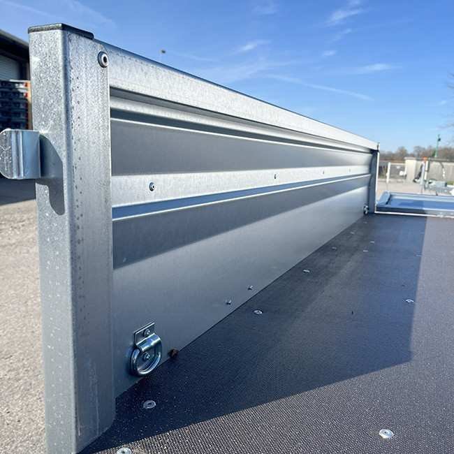 Des rehausses et des bâches peuvent être ajoutées pour adapter la remorque à vos besoins spécifiques.