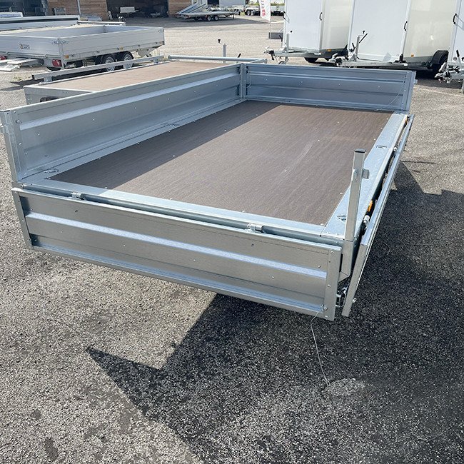 Avec ses dimensions utiles de 309 x 169 cm et un PTAC de 2000 kg, cette remorque allie robustesse, capacité de charge élevée et fonctionnalité.