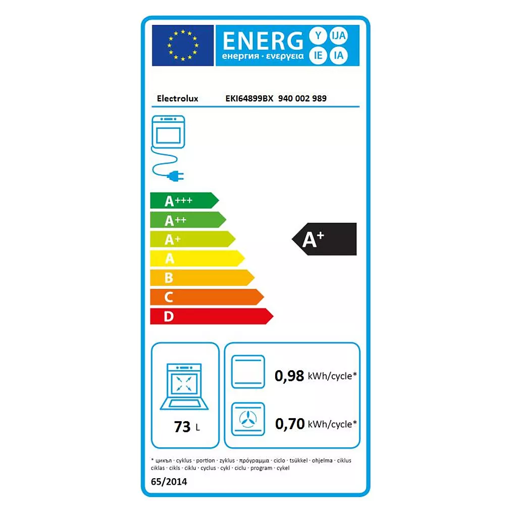 - Valeurs du label énergieLabel énergie A+, Consommation en convection naturelle 0,98 kW, Consommation en chaleur tournante 0,7 kW