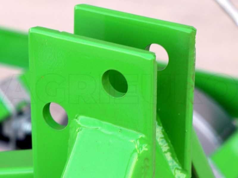 Le châssis est monté sur 3 rangées et l’espacement entre les dents est de 14 cm. Sur les extrémités des dents se trouve un soc facilement remplaçable.