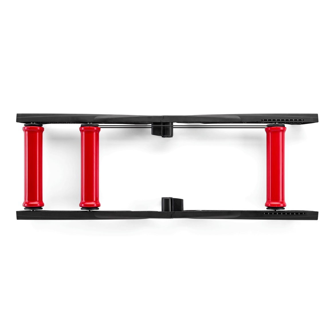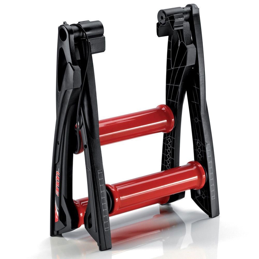 L’Elite Arion Rouleaux d’Entraînement possède un cadre super léger (environ 7 kg) et ultra stable en polyamide renforcé de fibres de verre. Des roulettes paraboliques d’un diamètre de 85 mm au centre et de 100 mm sur les côtés garantissent une sécurité accrue et empêchent la roue de sortir trop facilement du rouleau sur le côté.