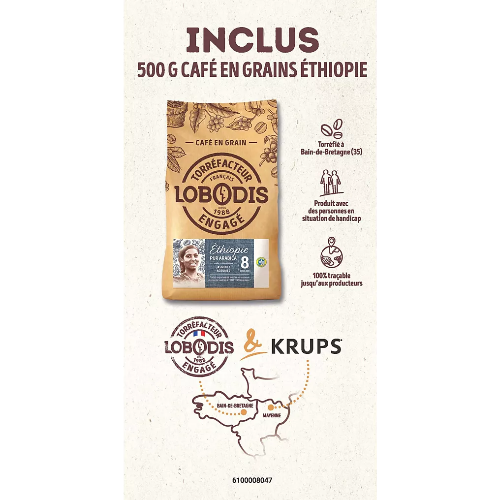 Expresso Broyeur KRUPS pack EA8168F2 + 500g café en grains — performance, simplicité et café fraîchement moulu