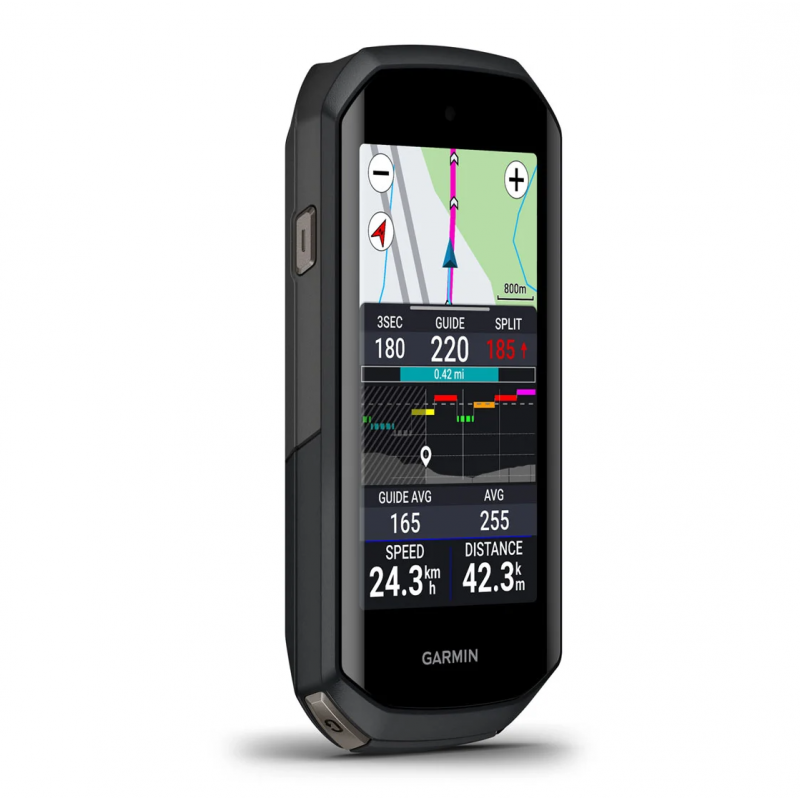 - Écran : Écran tactile couleur LCD transmissif de 3,5 pouces (diagonale), avec une résolution de 480 x 800 pixels. C’est l’écran le plus lumineux et le plus vif jamais produit par Garmin, offrant une excellente visibilité même sous un soleil direct, grâce à une technologie améliorée par rapport au Edge 1040.