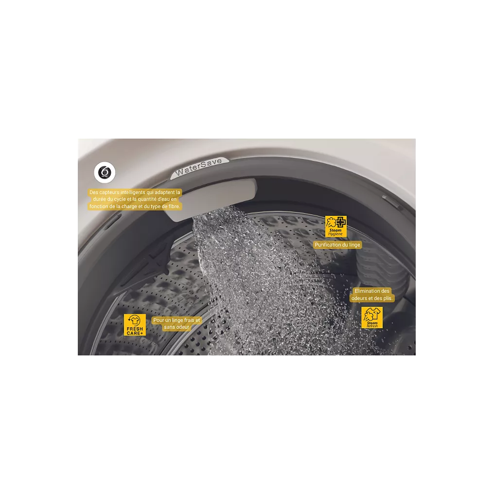 - Lavage vapeur en profondeuroui, idéal pour une hygiène parfaite et les personnes allergiques, élimine jusqu’à 99,9% des bactéries de votre linge grâce à la combinaison de la vapeur et du lavage à haute température.