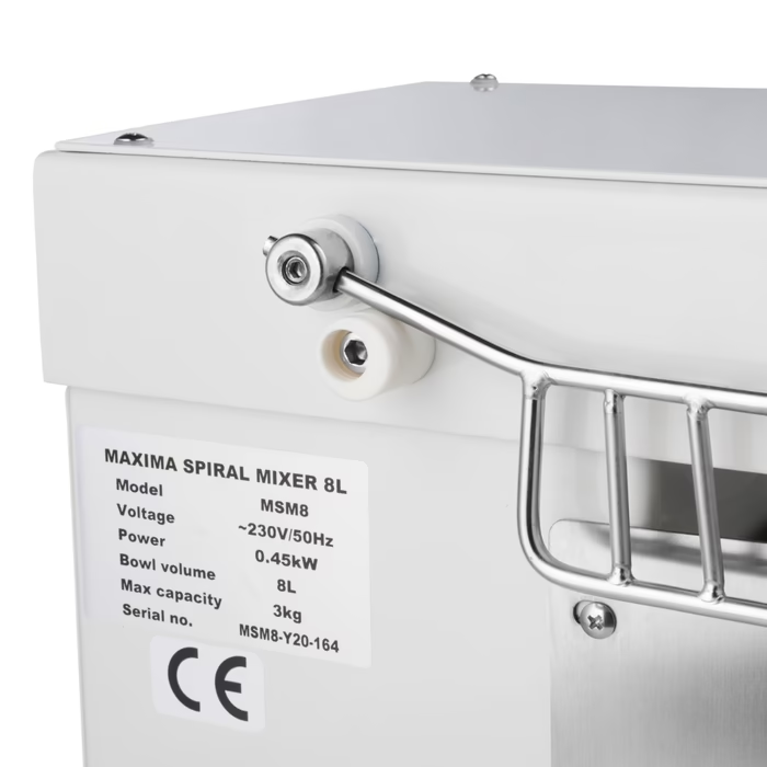 Cette capacité fait du Maxima pétrin à spirale 8L un appareil compact mais performant, idéal pour les productions quotidiennes de petites à moyennes quantités.
