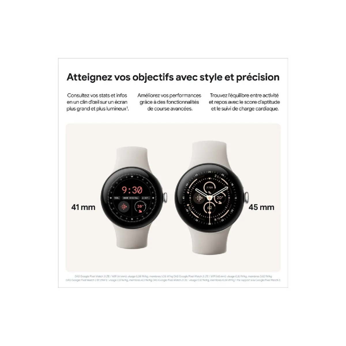 Brand Google : Google est reconnu pour ses services logiciels et son écosystème Android ; la Pixel Watch 3 combine ce savoirfaire logiciel avec un design soigné et des fonctionnalités santé avancées pour une expérience connectée fiable.