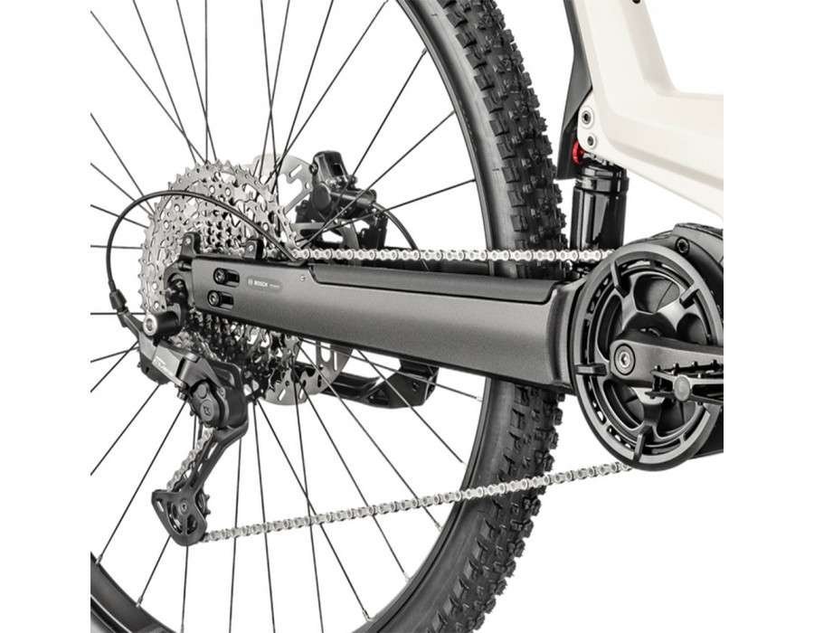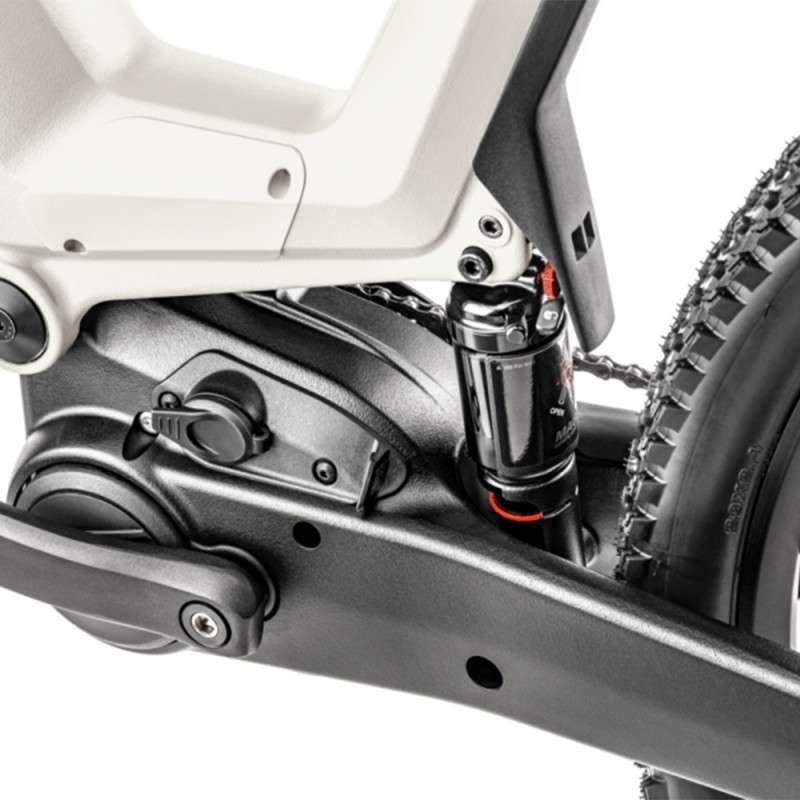 Le cadre présente deux parties, chacune étant conçue d’une seule pièce aluminium renforcée et ultra-robuste, moulée et forgée par gravité, sans soudures. La partie avant est en forme de J et intègre la batterie (avec une ouverture par le haut). Pour la seconde partie, c’est un bras oscillant monopoutre qui fait l’économie des haubans, à l’intérieur duquel se fond le moteur Bosch, qui devient quasi-invisible. Positionné verticalement, l’amortisseur fait le lien entre les deux parties via un axe puissant et des roulements surdimensionnés.