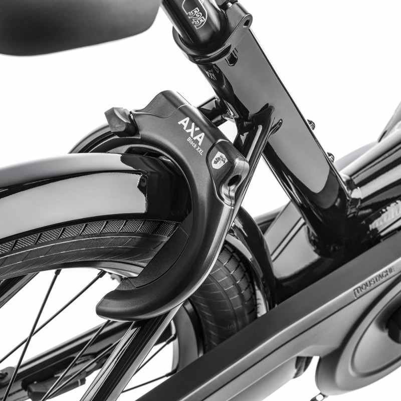 Ce vélo de ville électrique Moustache 27 de niveau 3 est équipé en Shimano, avec des freins à disque hydrauliques MT200 et un dérailleur 10V Deore. Les freins répondent de manière fiable, peu importe la météo du jour. Le dérailleur s’associe à une cassette de 11-36 dents, qui offre un bel éventail de braquets. Vous avez aussi les fameux pneus ballons Schwalbe Super Moto-X, avec une section XXL de 62 mm et une protection anti-crevaison très efficace.