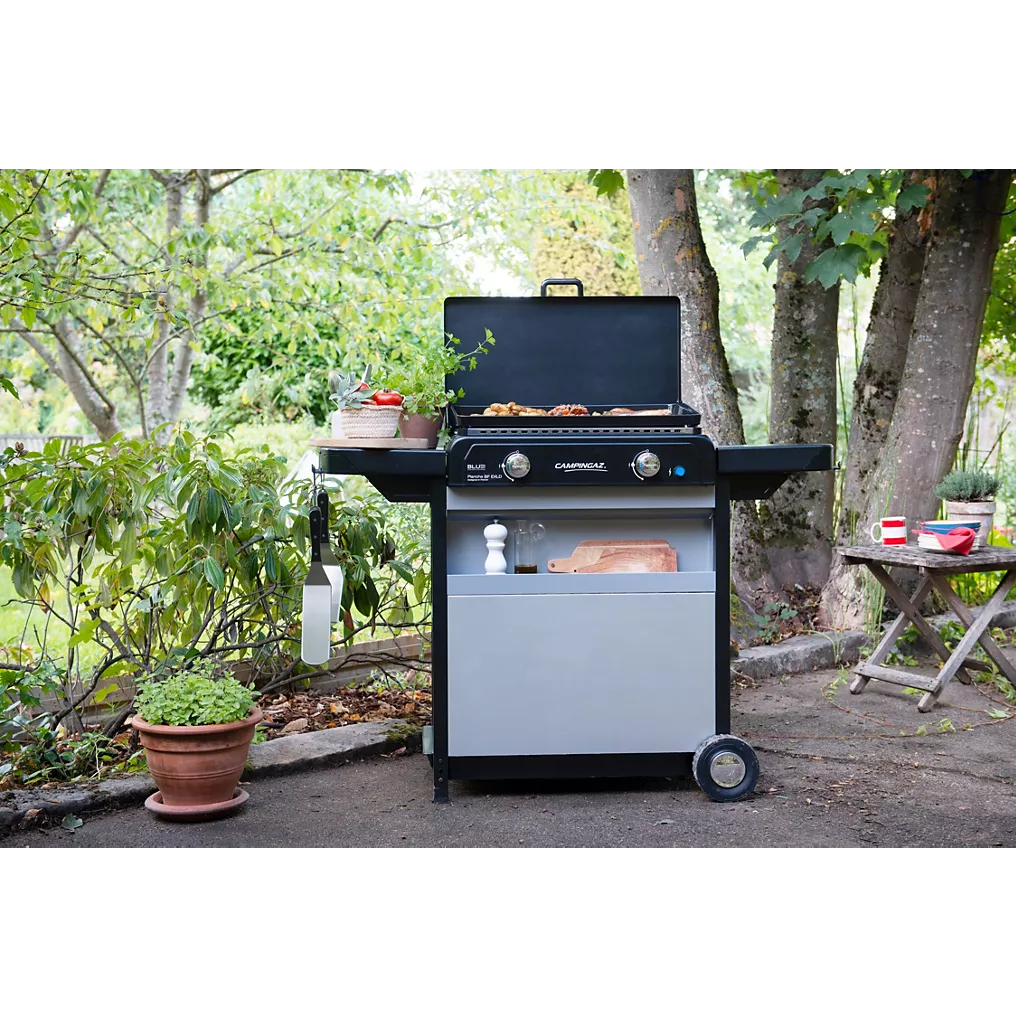 La plancha gaz Campingaz Blue Flame EXLD 2 brûleurs sur chariot est un appareil polyvalent, puissant et durable, parfaitement adapté aux repas en extérieur. Grâce à sa grande surface, sa technologie Blue Flame, son chariot pratique, ses réglages précis et sa facilité d’entretien, elle offre une expérience culinaire de haut niveau. Que ce soit pour des grillades conviviales, des recettes légères, des cuissons délicates ou des préparations créatives, elle garantit toujours des résultats savoureux et maîtrisés.