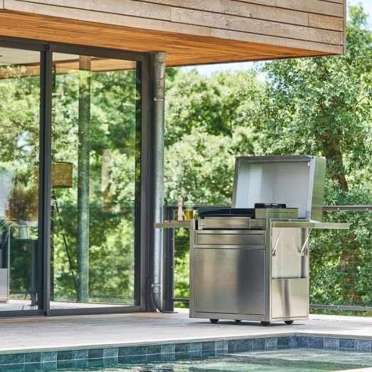 Son design moderne s’accompagne d’une vraie réflexion pratique : la G60 peut être associée à un chariot stable, sécurisé et équipé pour cuisiner confortablement en extérieur.
