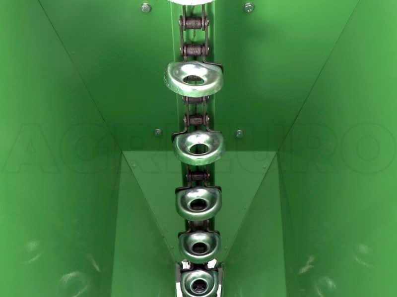 Le fonctionnement se fait au moyen de godets placés sur une petite bande transporteuse. Les godets prennent de la trémie les pommes de terre et les déposent au sol. Cette bande est actionnée par les engrenages à chaînes qui sont entraînés par les roues latérales. La vitesse de la bande transporteuse est donc directement proportionnelle à la vitesse d’avancement de la machine.