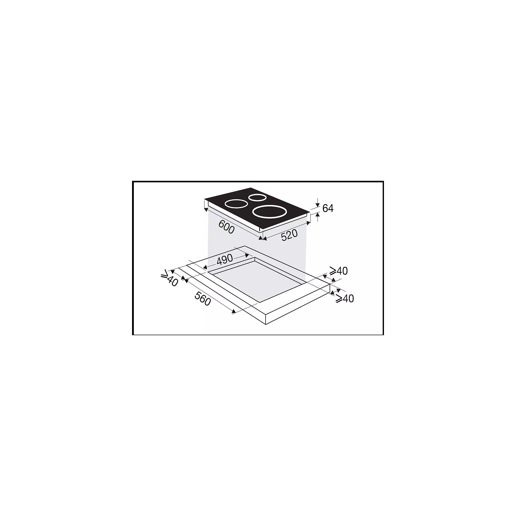 DimensionsDimensions l x h x p 60 x 6 x 52 cm, Longueur du cordon d’alimentation 1,30 m, LxHxP (encastrement) 55.8 x 5.6 x 48.8 cm