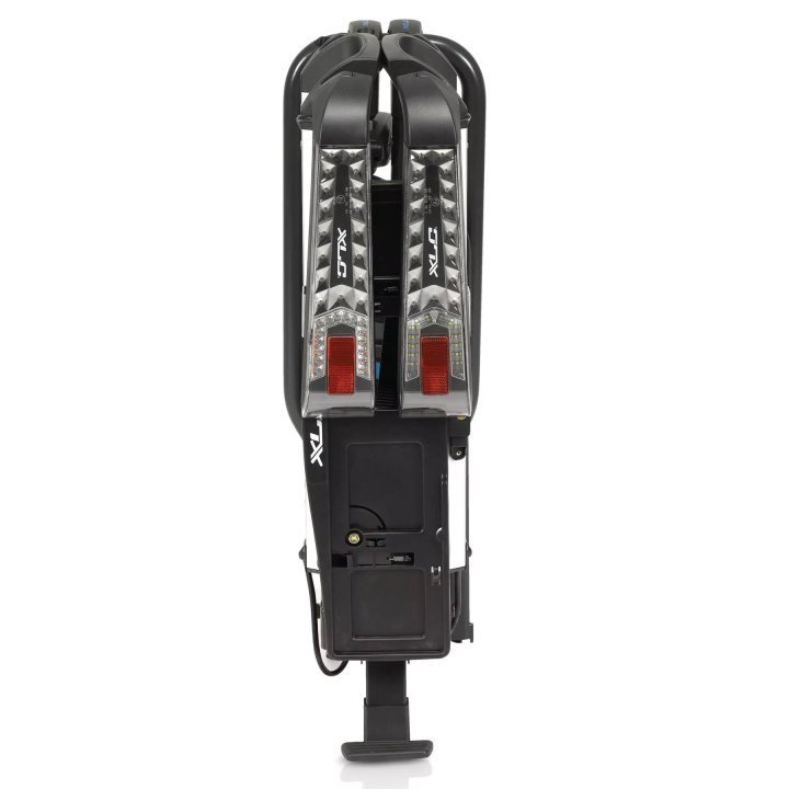 Le porte‑vélo est équipé d’un éclairage LED intégré, incluant feux stop, clignotants et feux de position, pour assurer la visibilité sur la route.