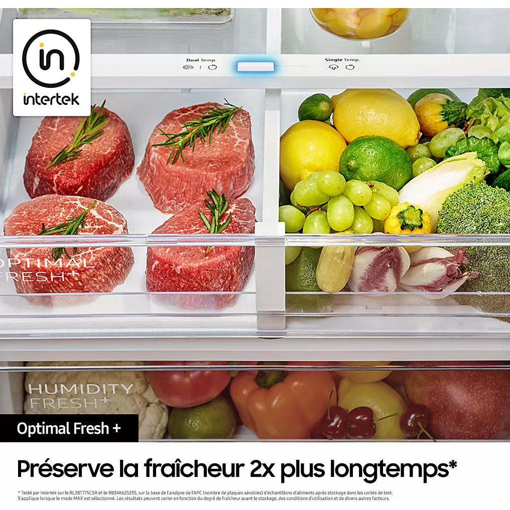 Avec ce combiné, vos légumes restent croquants, vos produits laitiers conservent leur fraîcheur, vos viandes gardent leur texture, et vos fruits bénéficient d’un environnement idéal. Le Réfrigérateur combiné SAMSUNG RB34C605CS9 permet aussi de prolonger la durée de conservation des aliments, ce qui aide à réduire le gaspillage et à planifier les repas sur plusieurs jours.