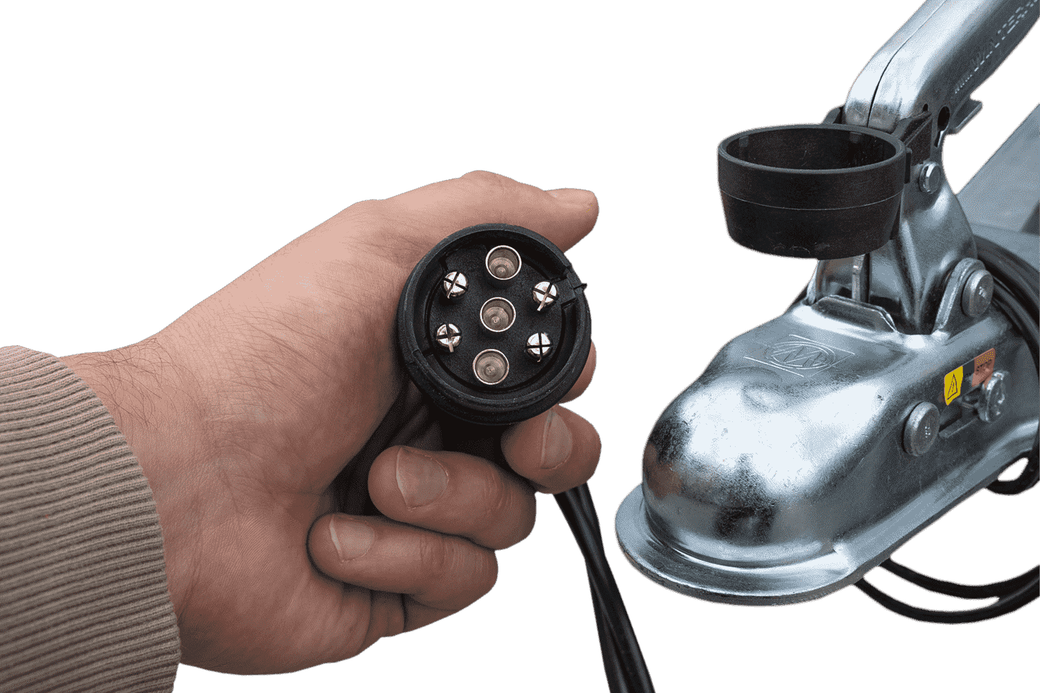 • Timon pliable en V, avec un boîtier d’attache équipé d’un témoin d’attelage correct.