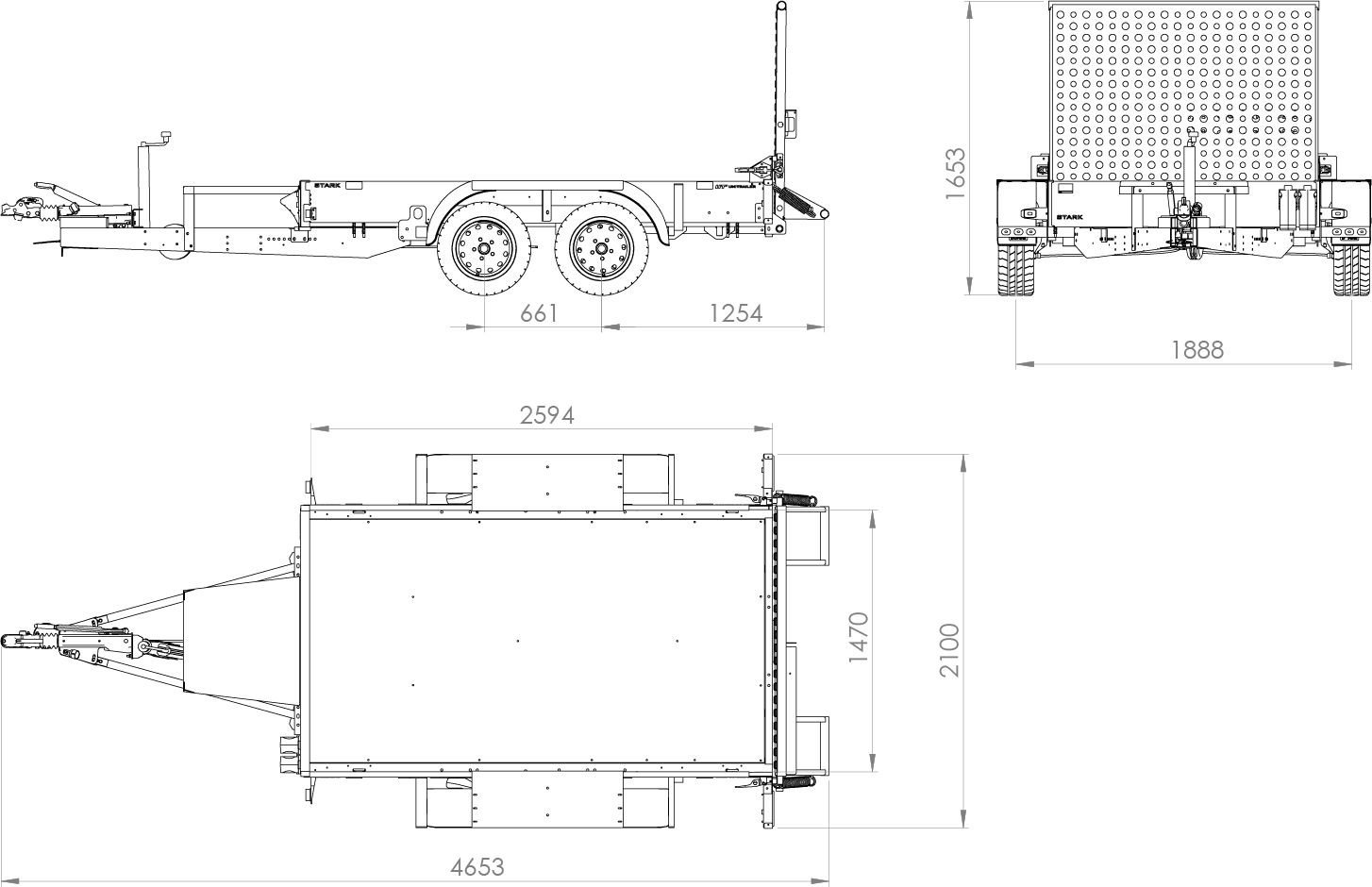 1. Présentation générale de la remorque de chantier pour mini pelle – UNITRAILER STARK 3 260