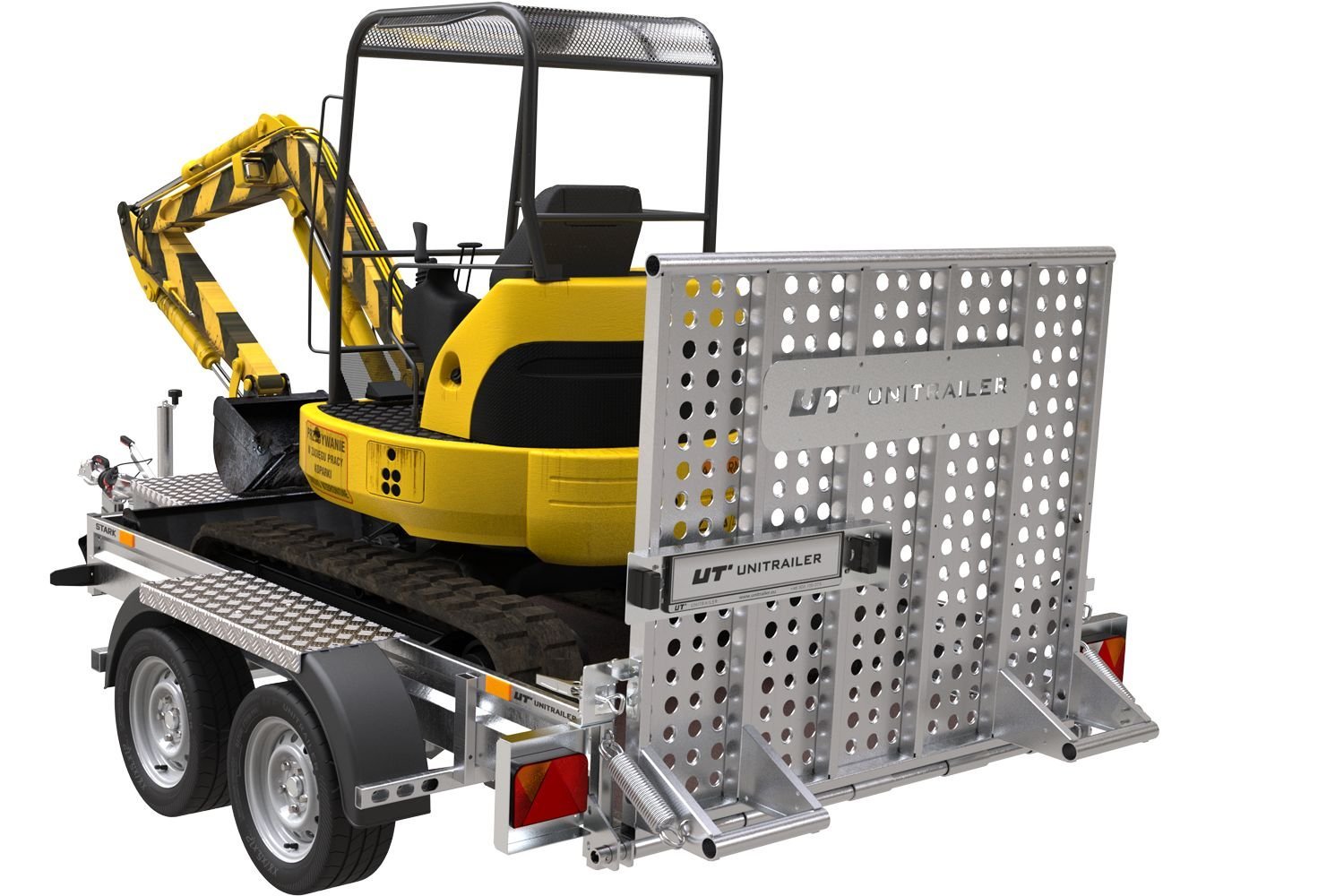 Remorque de chantier pour le transport d’une mini pelle – UNITRAILER STARK 3 260