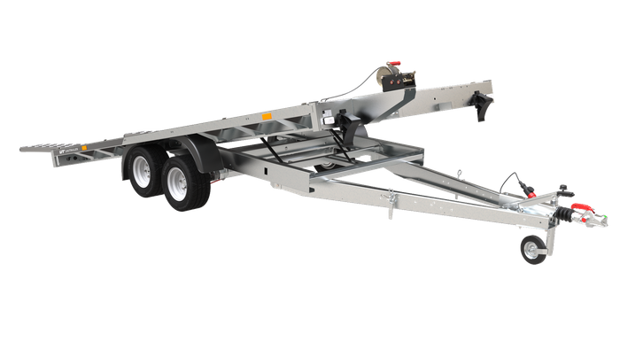 La remorque voiture UNIPLAT 4020S P est conçue pour le transport de véhicules, équipée de deux essieux. La roue jockey facilite vos tâches. Les dimensions de la surface de chargement de 4060 × 2000 mm et le PTAC maximum de 2700 kg permettent le transport sûr de vos véhicules. Des poignées solides pour sécuriser la charge garantissent la sécurité des marchandises transportées. La durabilité de la remorque est assurée par un cadre porteur en acier de construction à résistance accrue et une surface de transport en contreplaqué imperméable de 15 mm d’épaisseur. Les remorques de voiture pour le transport de véhicules de la série UNIPLAT sont disponibles avec des côtés.