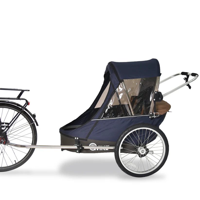 Remorque vélo 2 places 60 kg Wike – Premium Double – Poussette et Kit de Jogging inclus – marine/marron