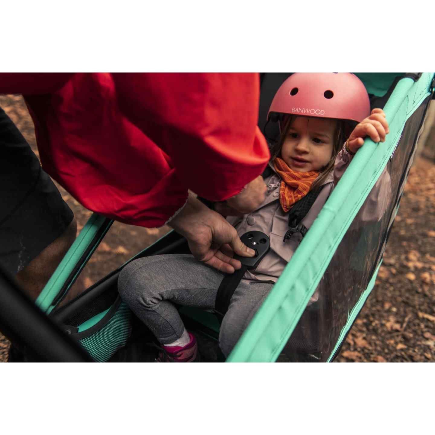 Le coloris Caribbean Green donne un style unique à cette remorque, parfaite pour les familles actives. La remorque inclut également un espace de rangement pour les affaires de l’enfant. Son montage rapide et son pliage compact facilitent son transport et son stockage. Enfin, la qualité allemande Tout Terrain garantit une durabilité exceptionnelle.
