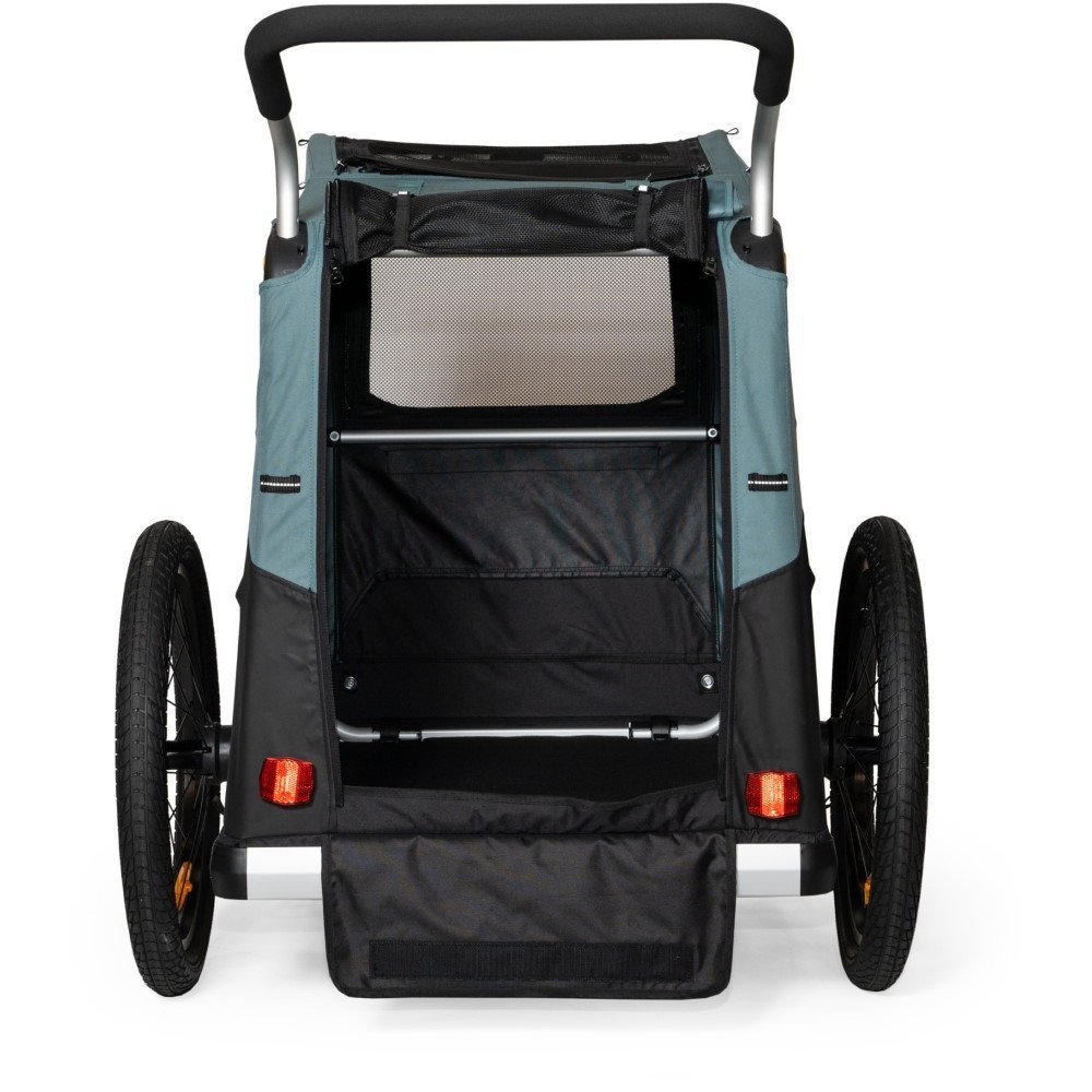 Le Remorque vélo pour chien Burley Bark Ranger XL – noir/turquoise mat se distingue par son look élégant en noir et turquoise mat, parfait pour les propriétaires exigeants. Son cadre solide et son plancher fixe assurent une stabilité maximale, même sur les terrains accidentés. De plus, la remorque dispose d’une grande ouverture pour faciliter l’accès de votre chien. Les matériaux bluesign® certifiés garantissent une fabrication respectueuse de l’environnement.