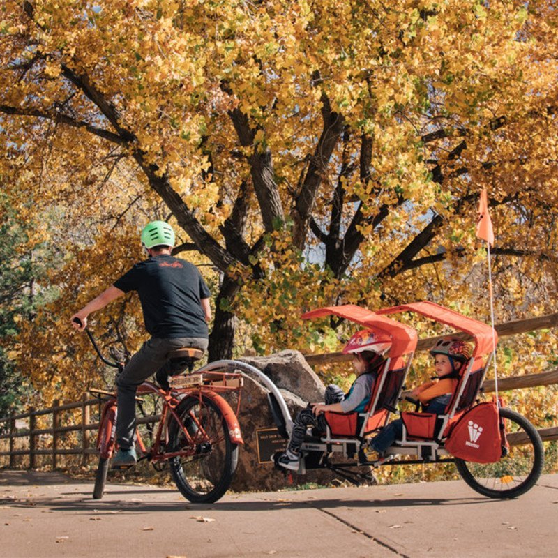 La remorque Weehoo iGo TWO est prévue pour tracter 1 à 2 enfants entre 2 et 9 ans. Après le succès rencontré dans la version 1 place, la Weehoo 2 répond à une vraie demande et va ravir aussi bien les parents que les enfants tractés. Cette remorque couchée iGo assure une conduite de qualité, un confort pour les enfants et une sécurité pour les parents.