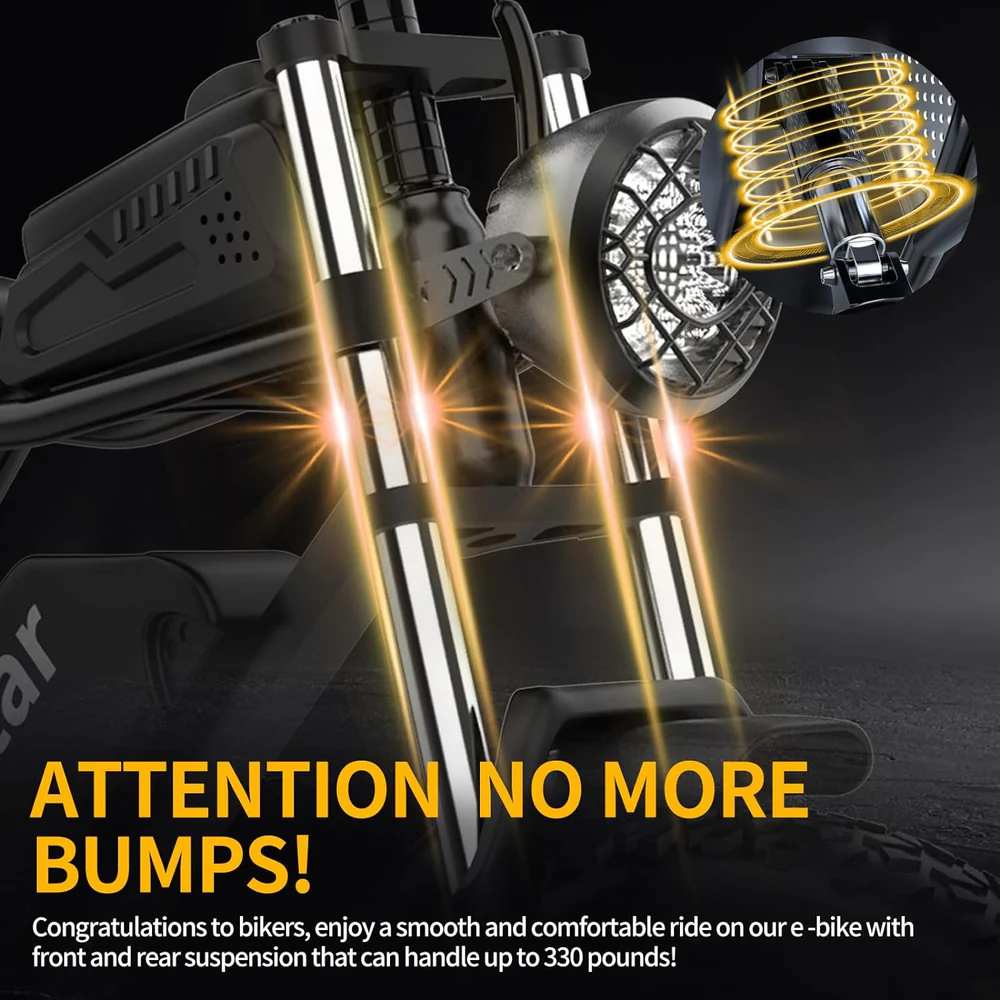 Pour améliorer le confort tout-terrain, le vélo intègre une suspension avant robuste et, selon les modèles, une suspension arrière optionnelle. Cette configuration permet d’absorber efficacement les chocs et de réduire la fatigue musculaire, ce qui est particulièrement utile sur les chemins accidentés ou les sentiers forestiers.