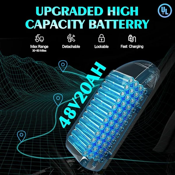Autonomie longue durée : batterie 48V 20AH offrant jusqu’à 100 km