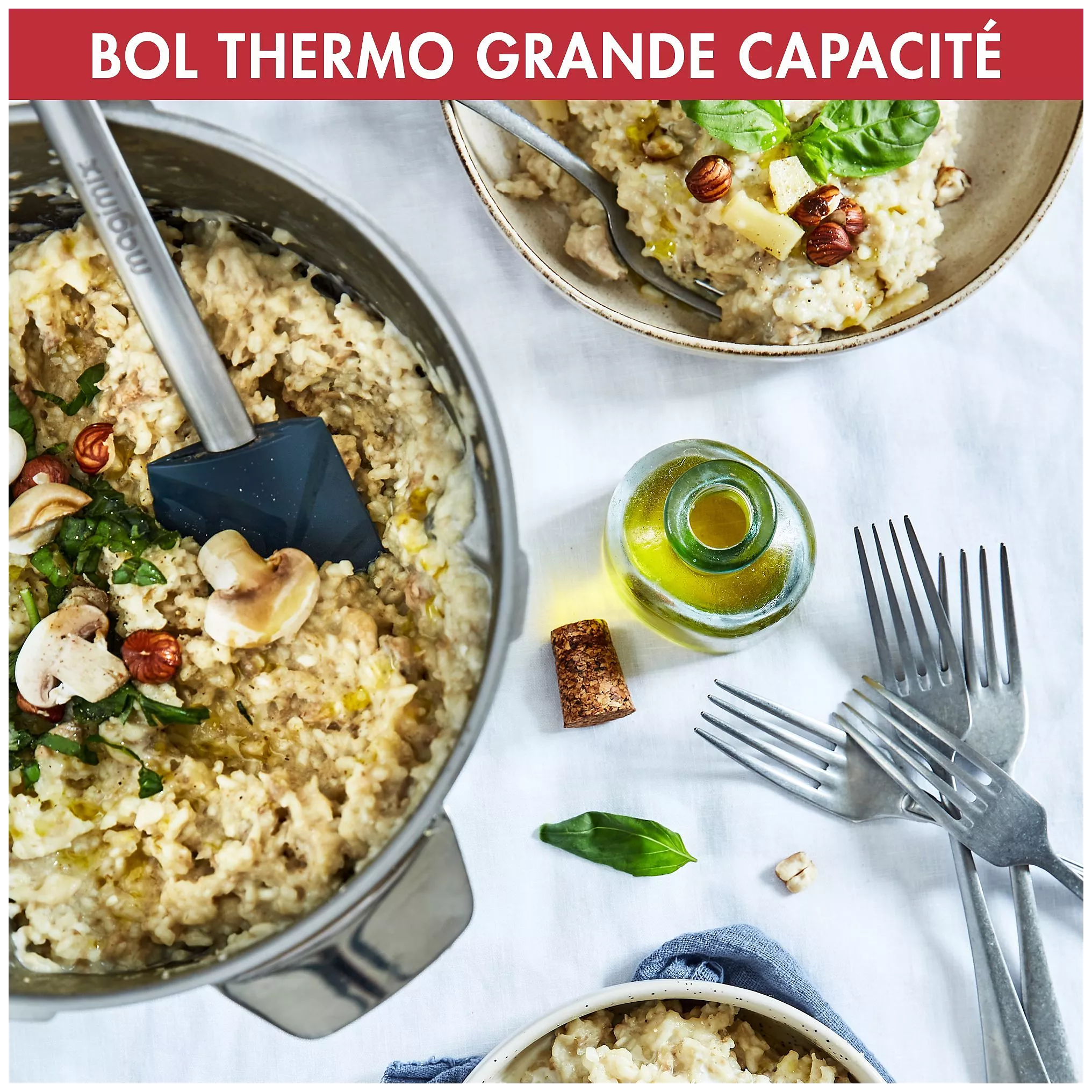 Avec son bol thermo inox de 3,5 L et ses 3 bols multifonction, il cuit, coupe, mélange, hache, râpe, mijote, pétrit et pile à la perfection.