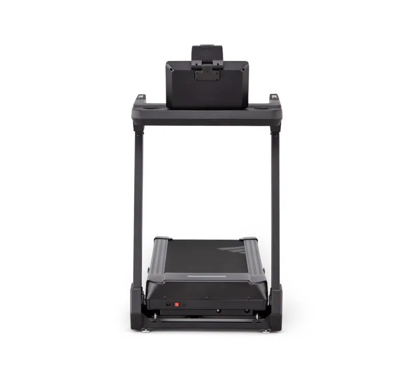 Un support pour tablette et smartphone, situé au-dessus de la console principale, offre un angle de vue optimal pour tout contenu que vous souhaitez lire sur votre appareil pendant que vous courez. Vous pouvez également connecter votre appareil via Bluetooth au système de haut-parleurs du tapis de course pour vous immerger totalement dans vos morceaux de musique, films et émissions de télévision préférés.
