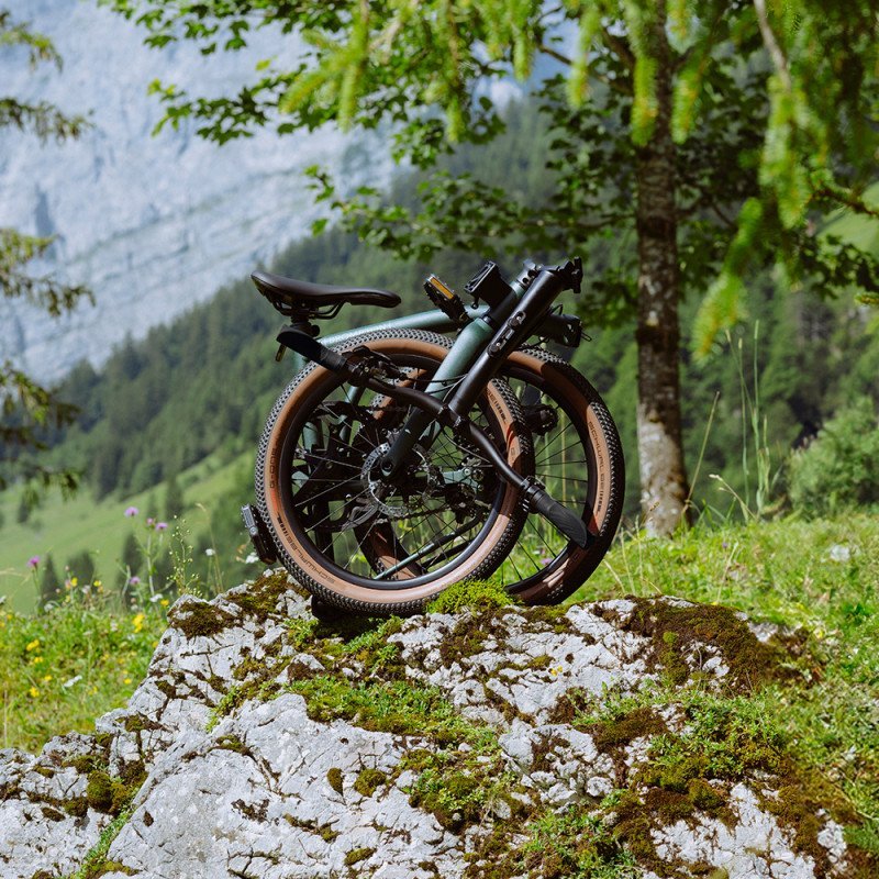 Ce mécanisme breveté est d’une précision remarquable : aucune pièce ne flotte, rien ne claque, et le tout reste solidement verrouillé une fois plié. Ce design assure également une parfaite protection de la transmission et de la chaîne, qui restent à l’intérieur du pliage, évitant ainsi les salissures pendant le transport.