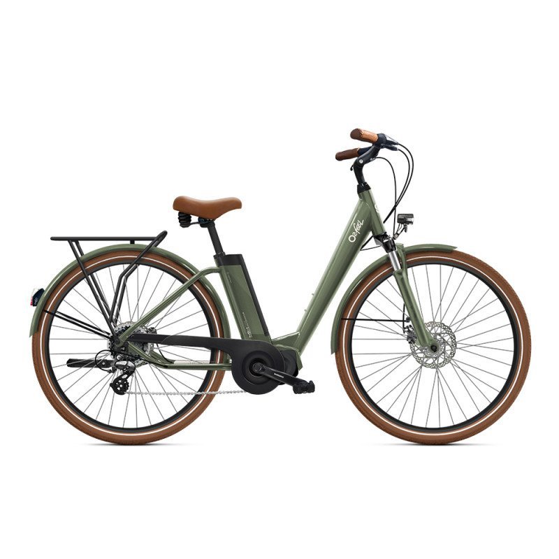 Ce vélo de ville électrique O2feel 4 est livré avec tous les accessoires attendus par le cycliste urbain, qui facilitent son quotidien : pour le stationnement (béquille), le transport de ses affaires (porte-bagages avec rack compatible MIK), le transport d’enfant (porte-bagages homologué), pour rouler sereinement sous la pluie (garde-boue) et dans l’obscurité (éclairages Axa/Spanninga). Les finitions sont soignées : les garde-boue sont assortis au cadre et à la fourche (blanc, bleu ou gris), comme les pneus, les poignées et la selle (marron).