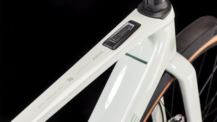 La technologie hybride légère Bosch, l’esthétique élégante du cadre en carbone et l’aspect pratique des garde-boue et du porte-bagages sont réunis sur le CUBE Nuroad Hybrid C:62 Race FE. La fourche entièrement en carbone est également prête pour le porte-bagage, et il y a plus d’espace que nécessaire pour les pneus Schwalbe de 45 mm – vous pouvez monter jusqu’à 50 mm – même avec les garde-boue inclus.