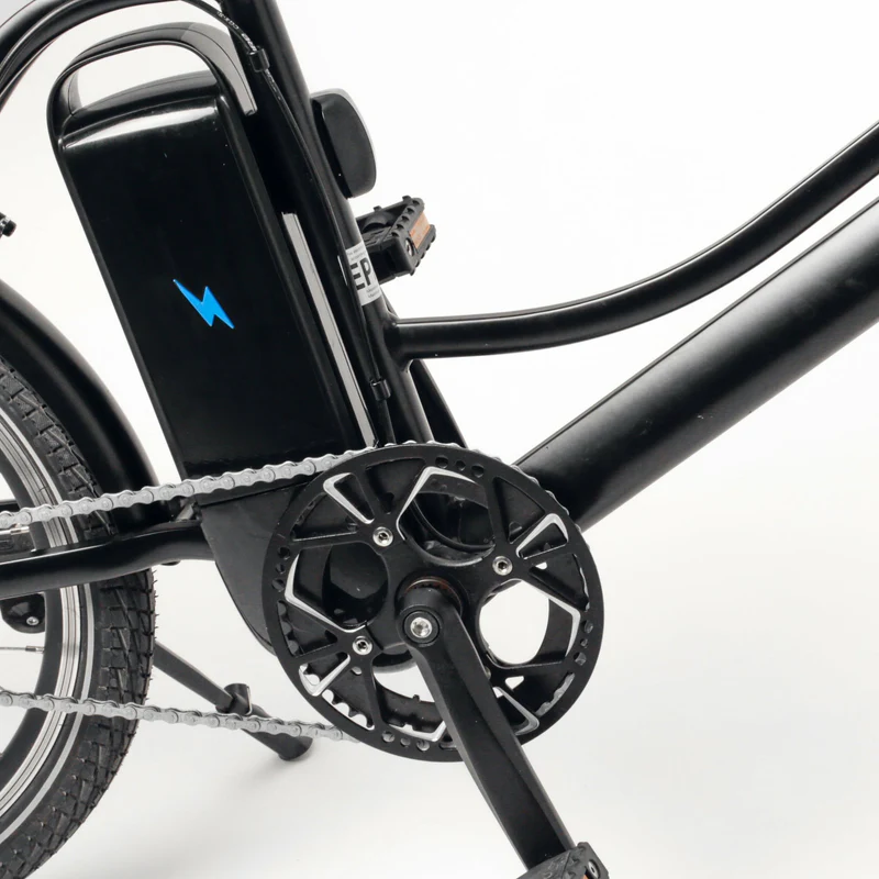 Batterie de seuelement 2,8 kg amovible à l’aide d’une clé. 375 Wh de puissance, 65 km d’autonomie et 4h30 de temps de recharge, il s’adapte à merveille à vos fréquents déplacements urbains.