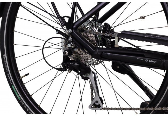 Le Peugeot eC01 D9 Active Plus est équipé d’une transmission Shimano Alivio 9 vitesses, reconnue pour sa fiabilité et sa douceur d’utilisation. Cette configuration offre une large plage de rapports, permettant de s’adapter à tous les types de terrain : plat, montée, descente ou circulation dense.