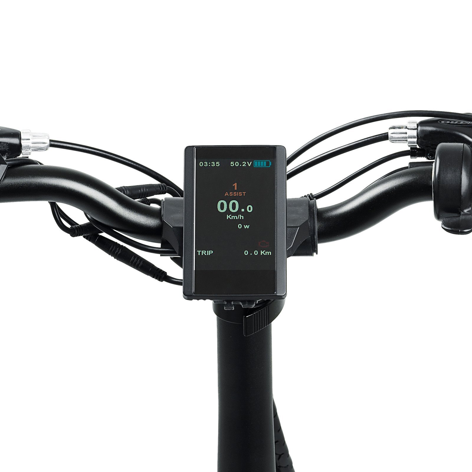 Au centre du guidon trône un écran LCD couleur haute résolution, véritable tableau de bord du Mate X EVO.