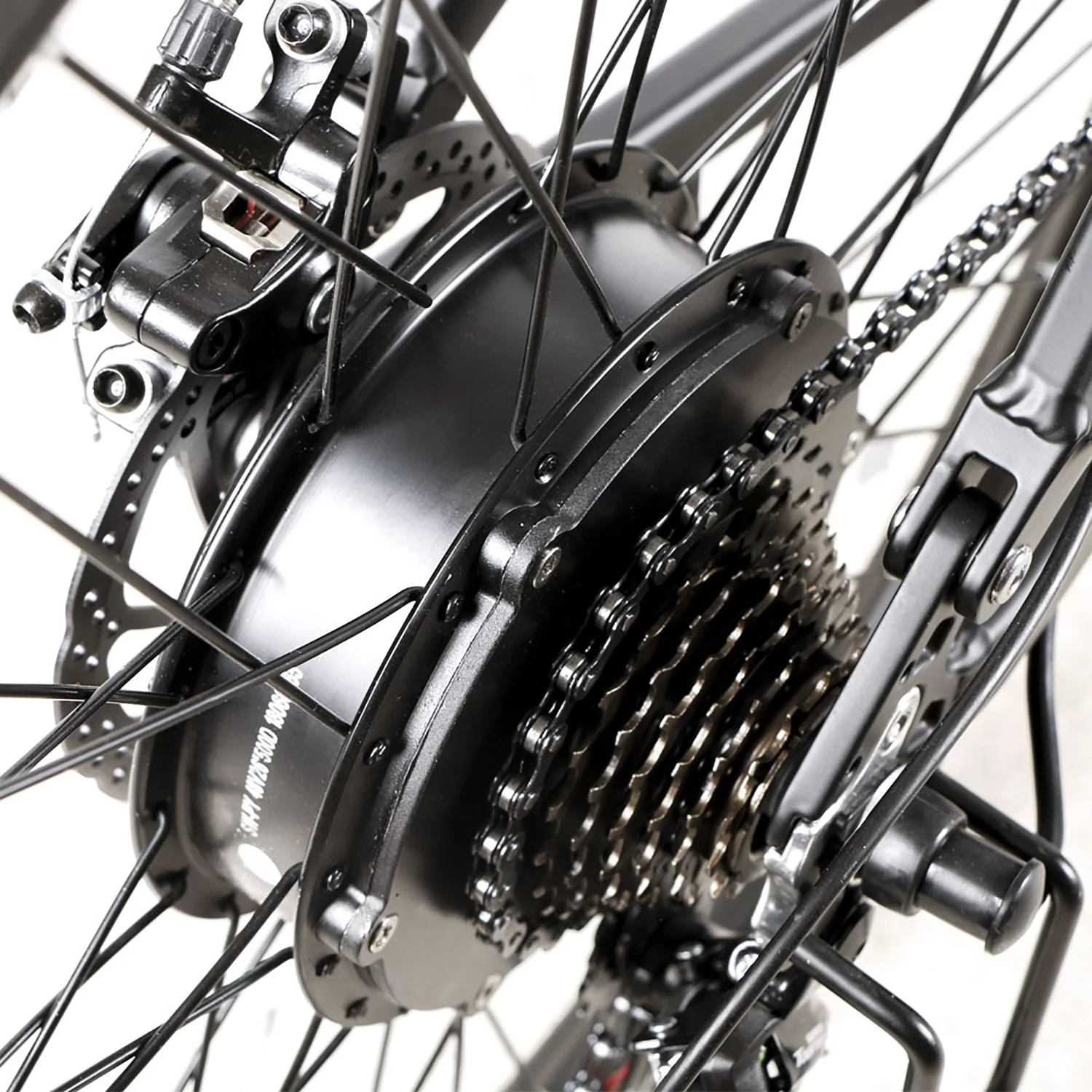 Le cœur du Vélo électrique SAMEBIKE LO26-FT 500W Moteur est son moteur de 500 watts, placé au niveau de la roue arrière. Cette configuration permet une propulsion fluide, efficace et dynamique. La puissance de 500W le distingue de nombreuses alternatives de 250W disponibles sur le marché, lui procurant une accélération plus vive et un comportement plus sportif.