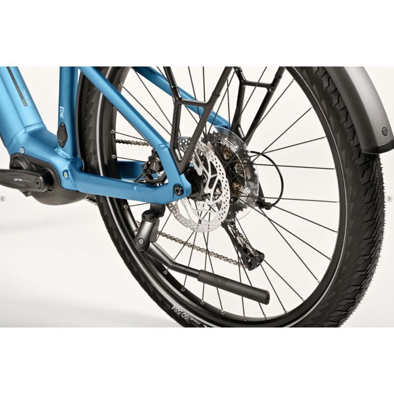 Le cadre est disponible en plusieurs versions : Diamant (classique), Trapez (mixte) et Wave (col bas). Cette diversité permet à chaque cycliste de trouver la géométrie la mieux adaptée à sa morphologie et à son style de conduite. Le positionnement du moteur, centré et bas, abaisse le centre de gravité du vélo, améliorant ainsi la stabilité et la maniabilité, même chargé.
