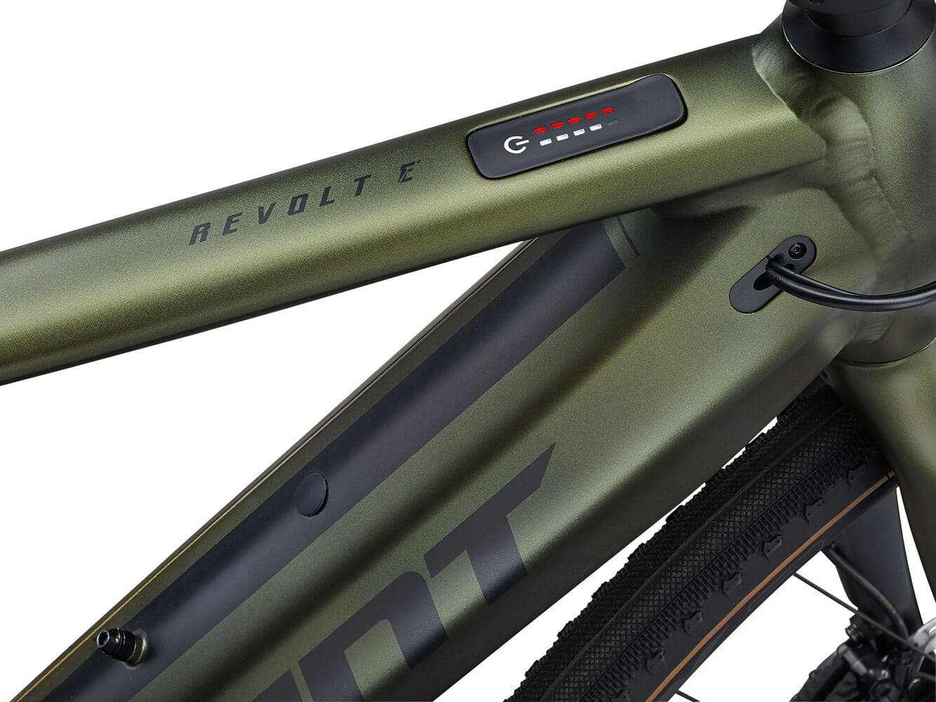 Vélo Gravel électrique Giant Revolt E+ 1: La nouvelle batterie EnergyPak Smart Compact 500 offre une grande capacité et s’intègre très discrètement dans le tube diagonal pour un cadre au design épuré.