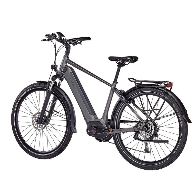 Ce Kalkhoff supporte vos sacoches de randonnée, une caisse ou un panier, sur son porte-bagages MIK. Il utilise des éclairages Herrmans avec un puissant feu avant Nordic MR5 de 40 lux. Les garde-boue, la béquille et l’antivol de cadre font partie de l’équipement de série.