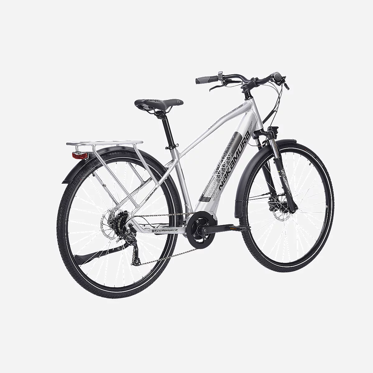Le E-CROSSOVER A est le vélo polyvalent électrique pour adulte de la marque NAKAMURA. Il vous permet d’emprunter routes et chemins avec confort et robustesse. Grâce à l’assistance électrique, vous contrôlez votre effort en ressentant un coup de pouce qui fera la différence.
