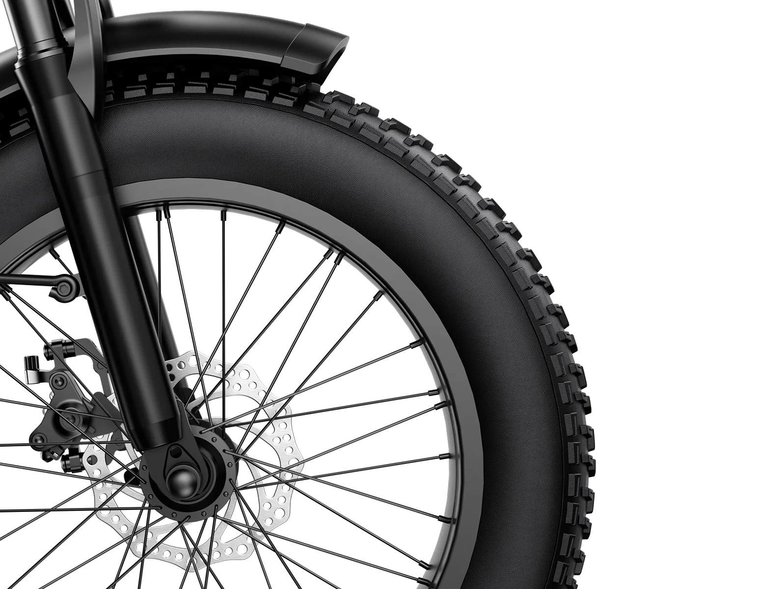 • Pneus tout-terrain Fat : parcourez n’importe quelle surface en toute confiance grâce à des pneus Fat de 4 pouces qui adhèrent solidement au sable, à la boue ou à la neige, améliorant ainsi la stabilité et la sécurité sur divers terrains.