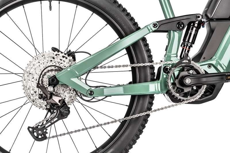 Le vélo est souvent doté d’une transmission Shimano Deore ou XT 12 vitesses, offrant une large plage de développement et une précision exemplaire.