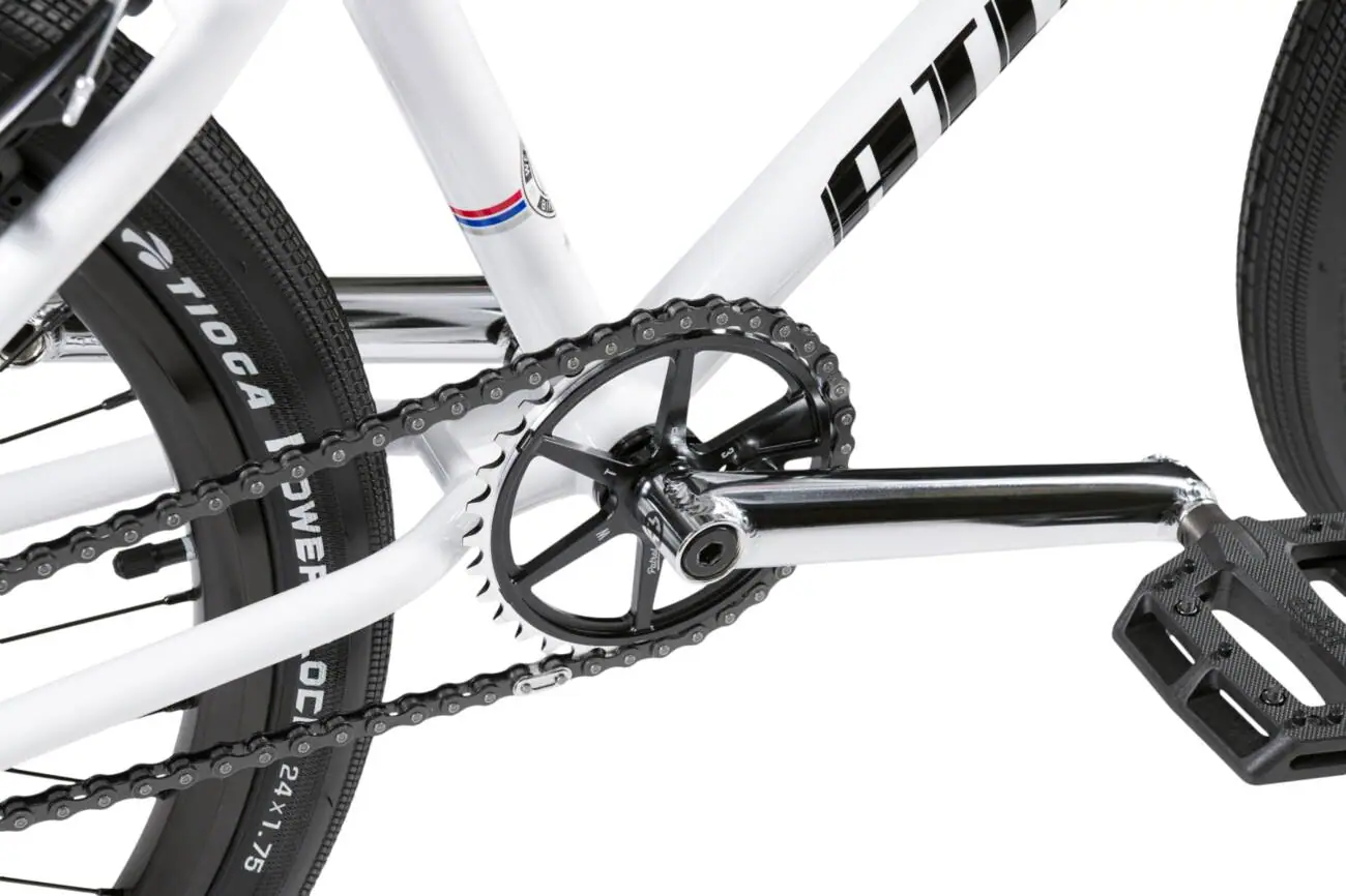 Ce BMX est équipé d’un plateau 33 dents en alliage 6061-T6. Cette transmission est robuste et offre une vitesse adaptée au freestyle. La chaîne Z510HX renforcée assure une bonne résistance à l’usure.